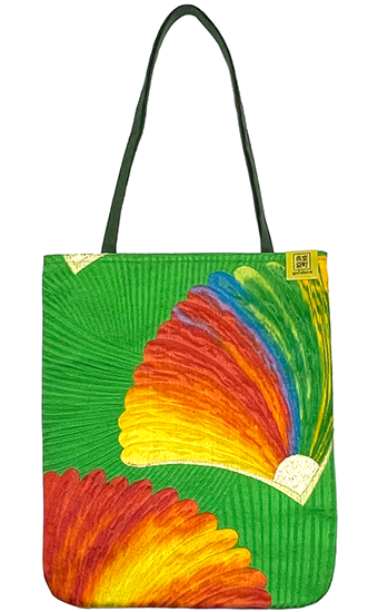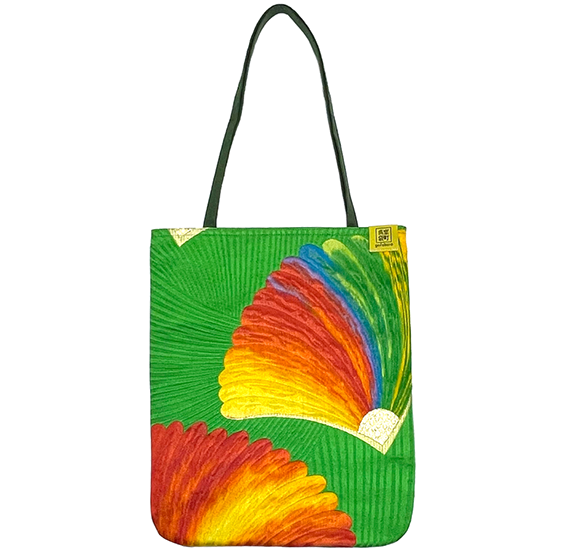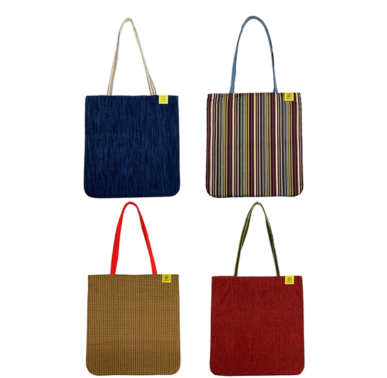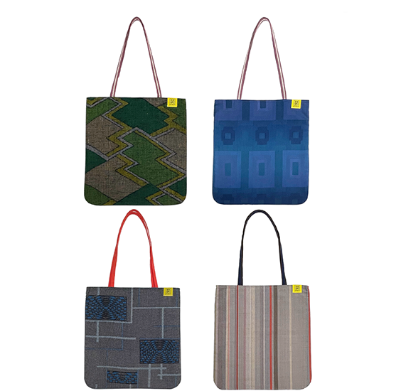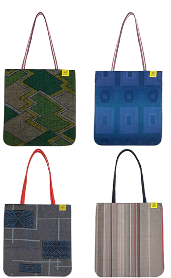 室町呉袋で買い付ける着物用の反物は、1970年代〜2000年代に作られたユニークで個性的な色味やデザインが特徴です。室町呉袋では、デザイン性の高い反物の個性を最大限引き出すため、ストンとした平面バッグを中心に展開しています。