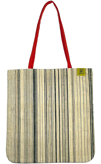 室町呉袋の持ち手には、茶道具や帯締めに用いられる強くて丈夫な「真田紐」(さなだひも)を使用することで、バッグの耐久性をアップさせています。また真田紐の中でも、二つ折りにして作られたより丈夫な真田紐を選定しています。